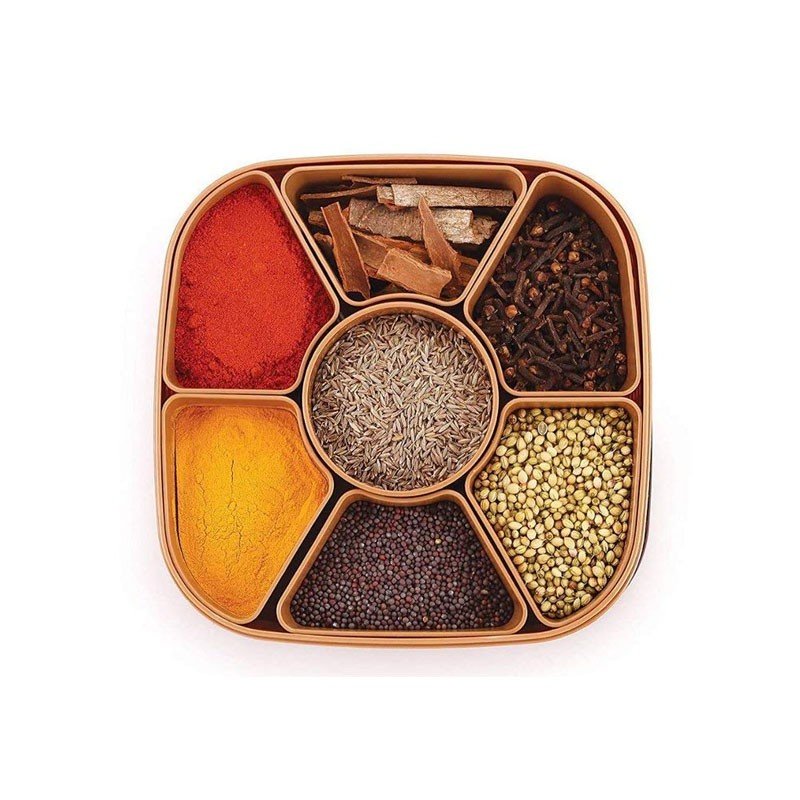 Separate seven removable cups for storing herbs or spices or dry fruits, easy to hold, pick up and carry, keep spices fresh for long hours, Helps Maintain Good Health and Hygiene.
